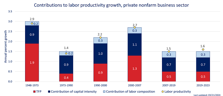 To give you some idea of the magnitude of the ROI at stake here, consider historic productivity contributions—by labor and capital—in the 20th century in nonfarm business sector, which is larger than just knowledge workers but contains them.