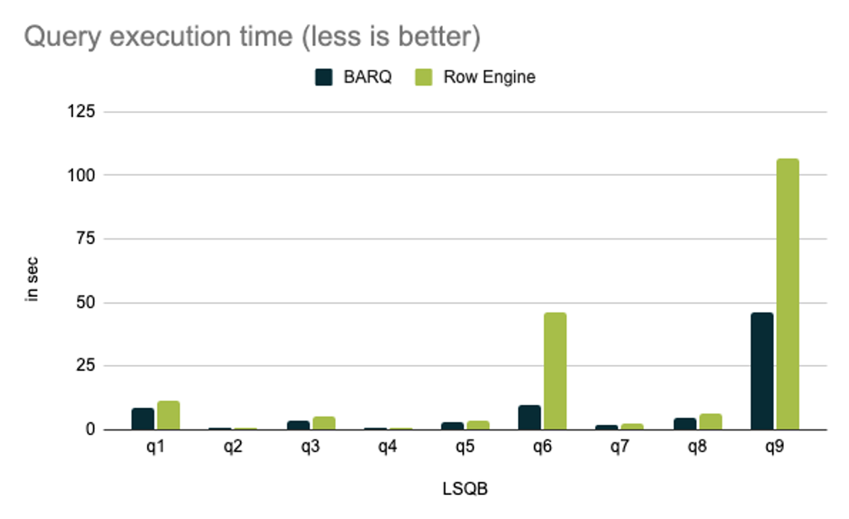 👉🏽 The key insight is that CPUs are very fast when doing simple tasks on data which can be accessed fast. The BARQ execution model supports this by replacing all existing row-based Stardog operators with versions which work on batched solutions with a columnar storage.