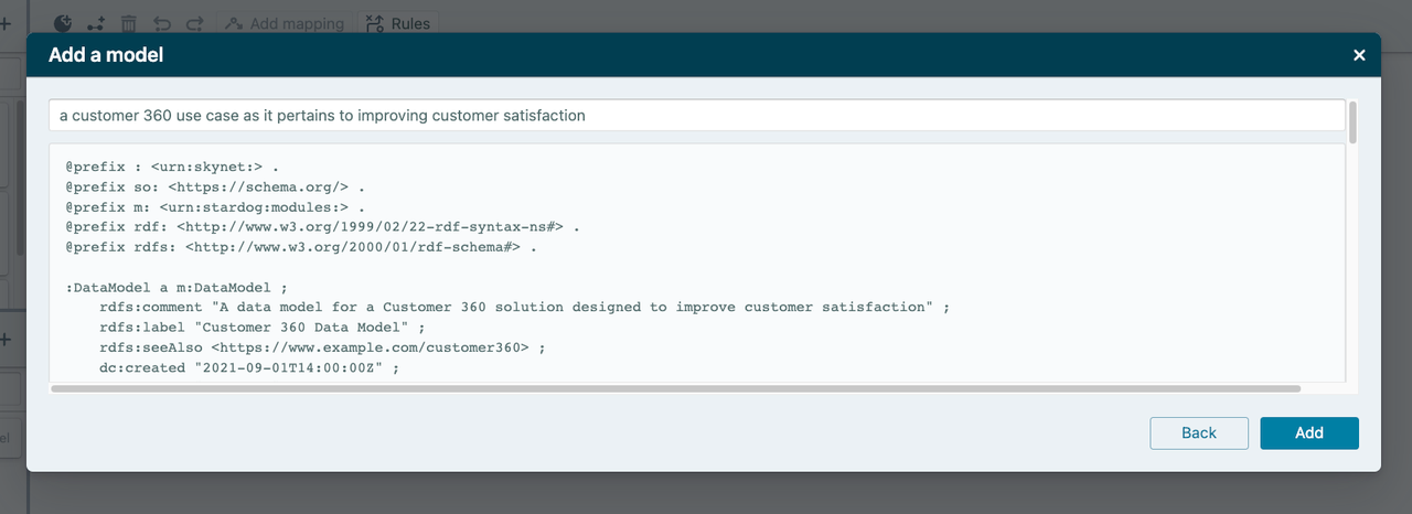 In less than 5 minutes, I generated a starter data model, added an additional concept, and added a rule using the generated model and my new concept to infer new data about my domain: