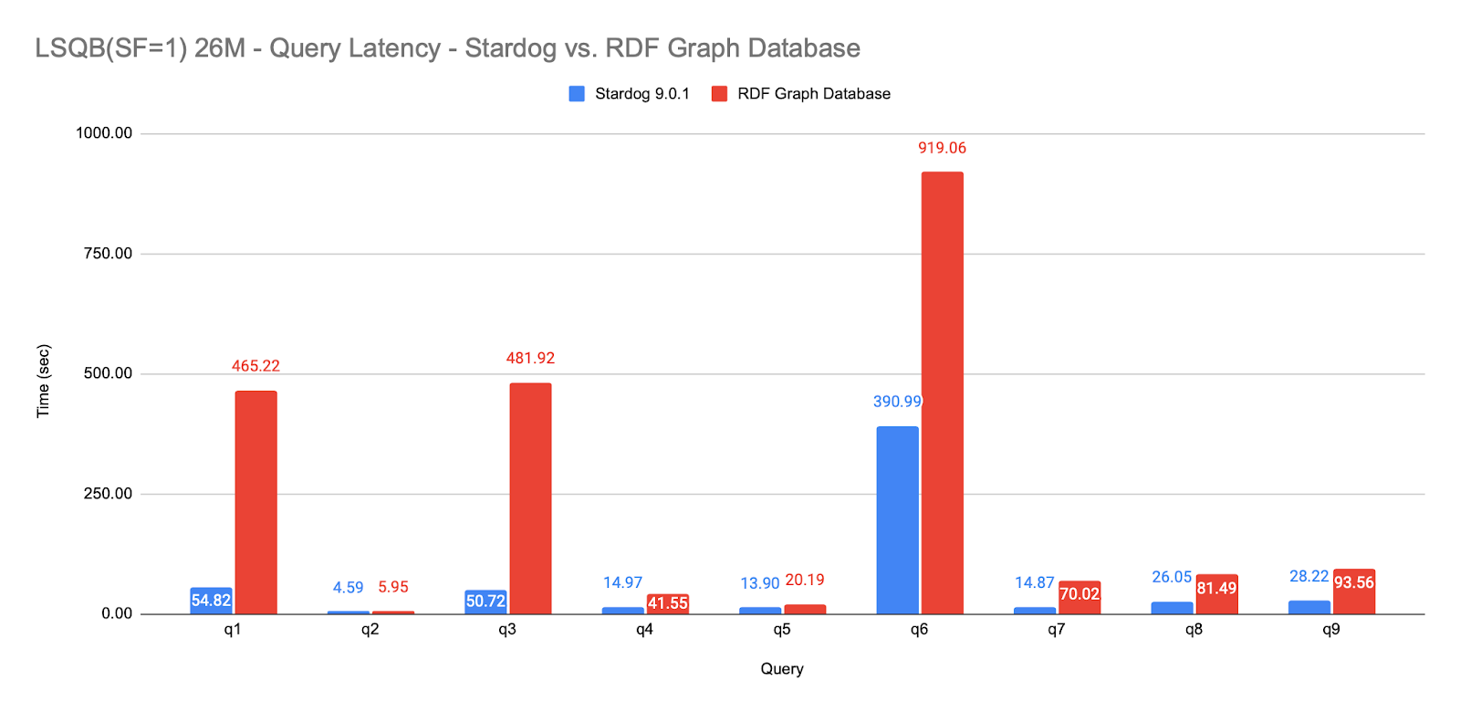 And, as previously reported, Stardog can scale to 1 trillion triples by utilizing virtual graphs in a hybrid multi cloud setup with query answering times of 1 second or less, even for queries that require reaching out to multiple data sources. The Stardog setup is 98% cheaper to run than the only competitor who could reach this scale.