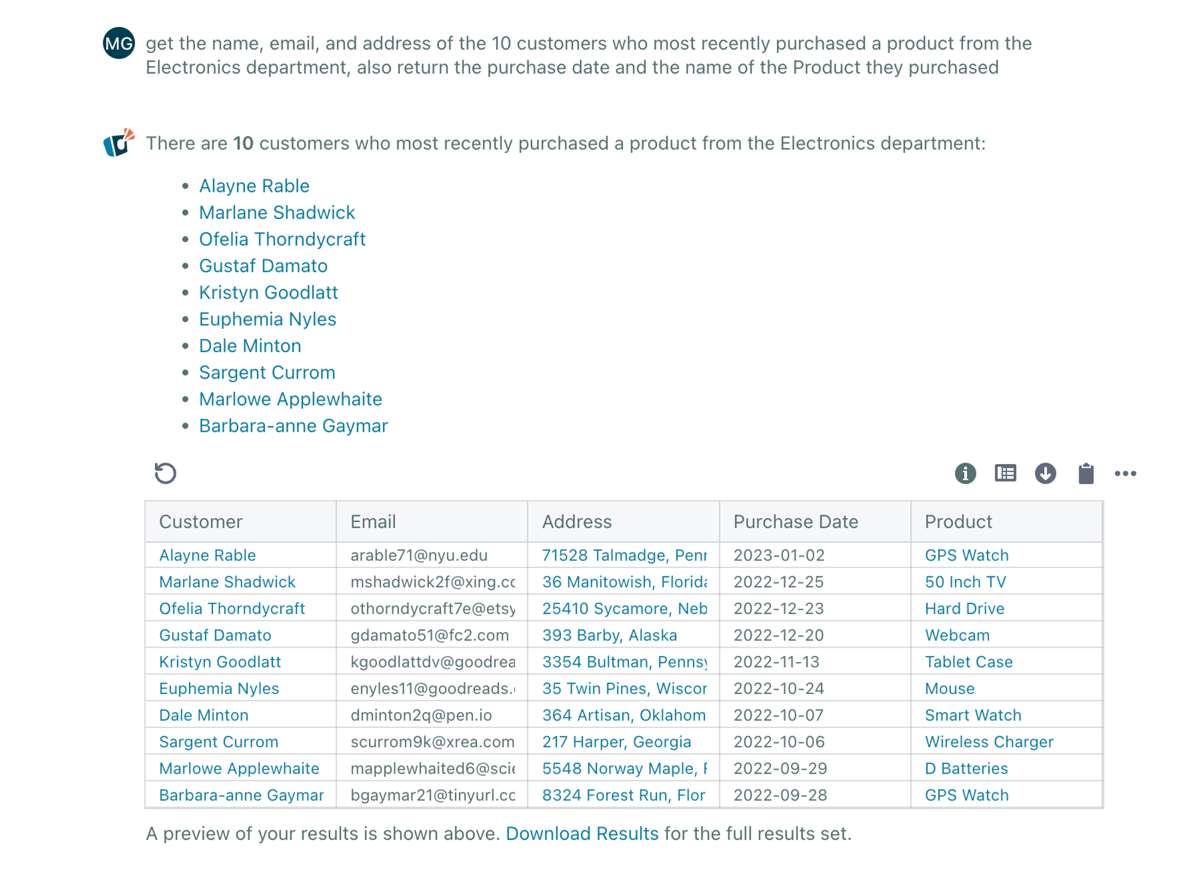 Notice what I haven’t talked about in this blog post? ETL, query syntax, skills acquisition, special training, GPUs, LLM quantization, parameter size, etc. We live, love, eat and breathe all that tech stuff so our users and customers can focus only on what matters to them: having aha! moments and moving their business forward at breakneck speed.