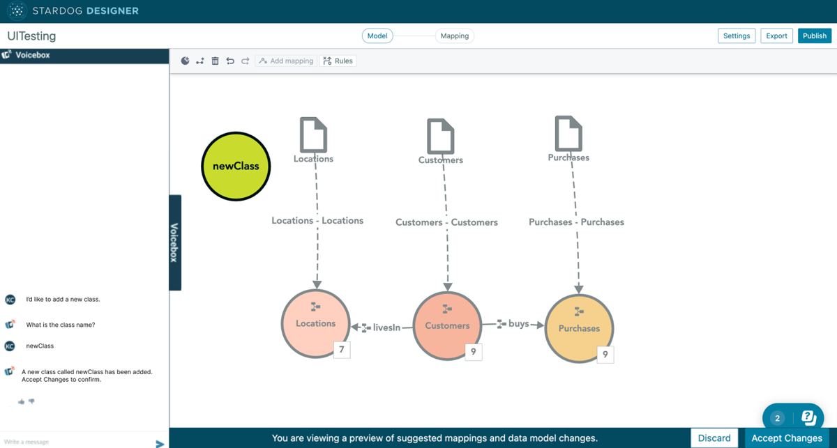 All of the arguments for Voicebox for end-users—immediacy, speed to insight, self-service, democratization—apply to implementing Stardog, too. That includes using natural language as the interface to every Stardog job-to-be-done including data modeling and data mapping.