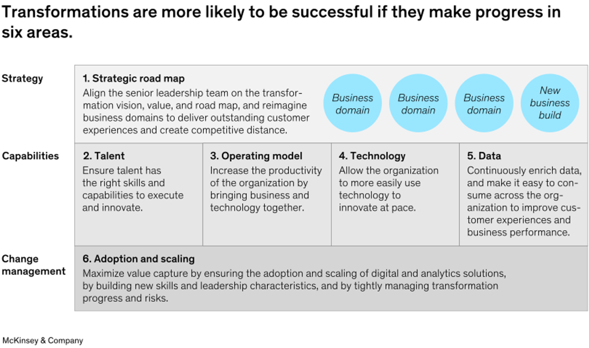 Year over year in McKinsey’s work on digital transformation, what distinguishes data leaders from data laggards is the percentage of knowledge workers who are enabled to self-serve analytically with respect to data.
