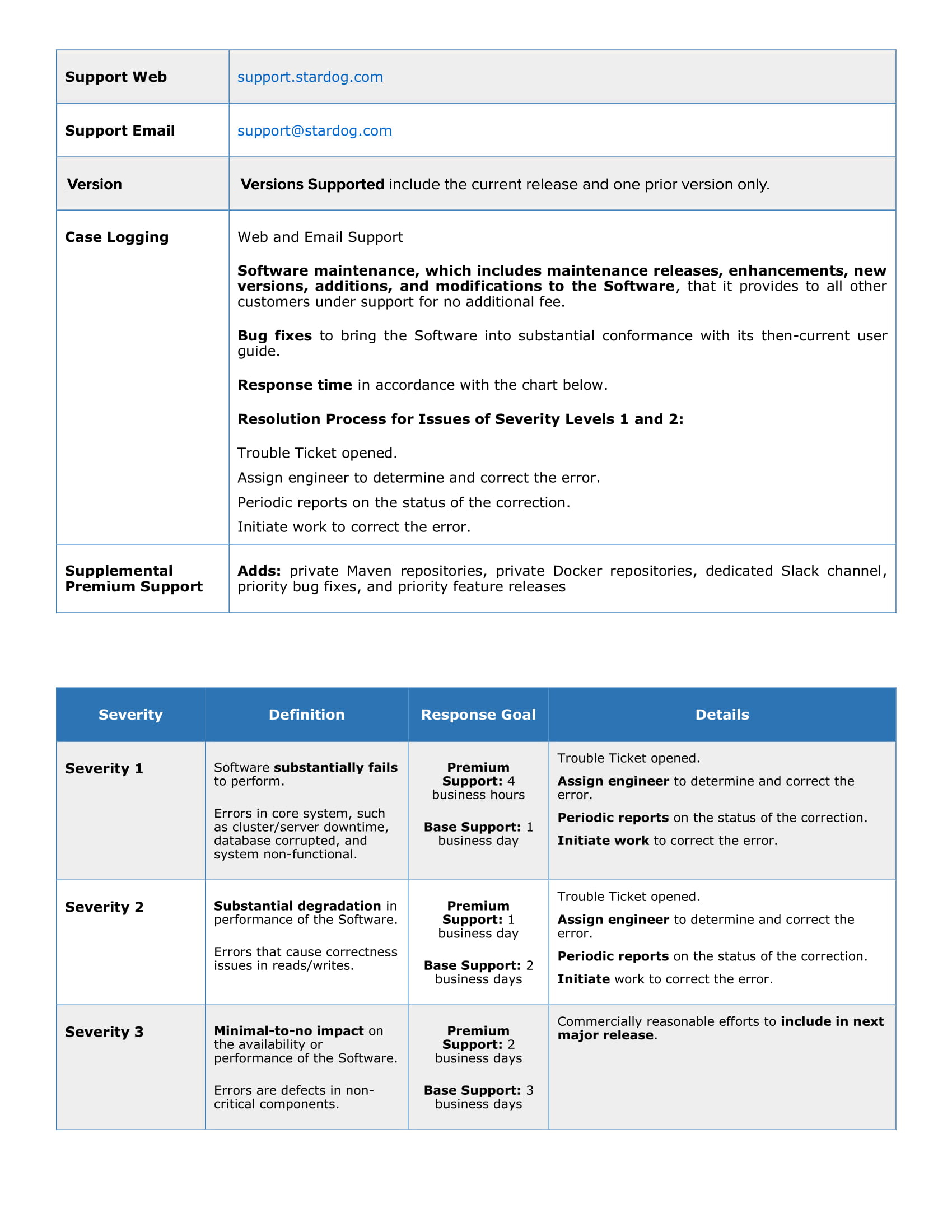 Below are Stardog’s Support Terms. You can also download the terms here.